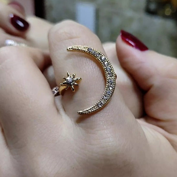 Zinc Alloy Moon And Star Ring